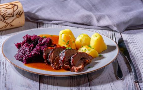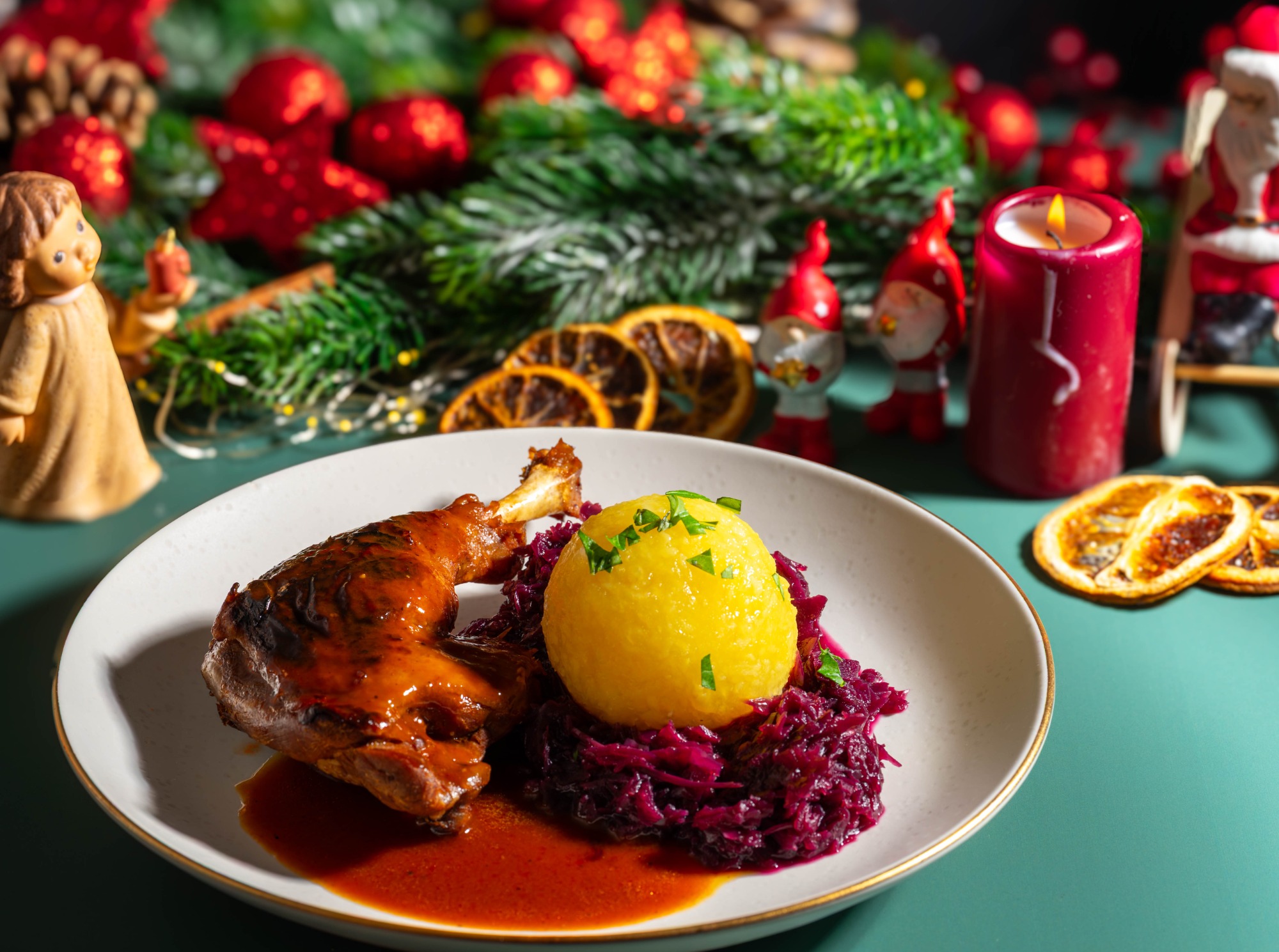 Entenkeule mit Rotkohl und Kartoffelklöße